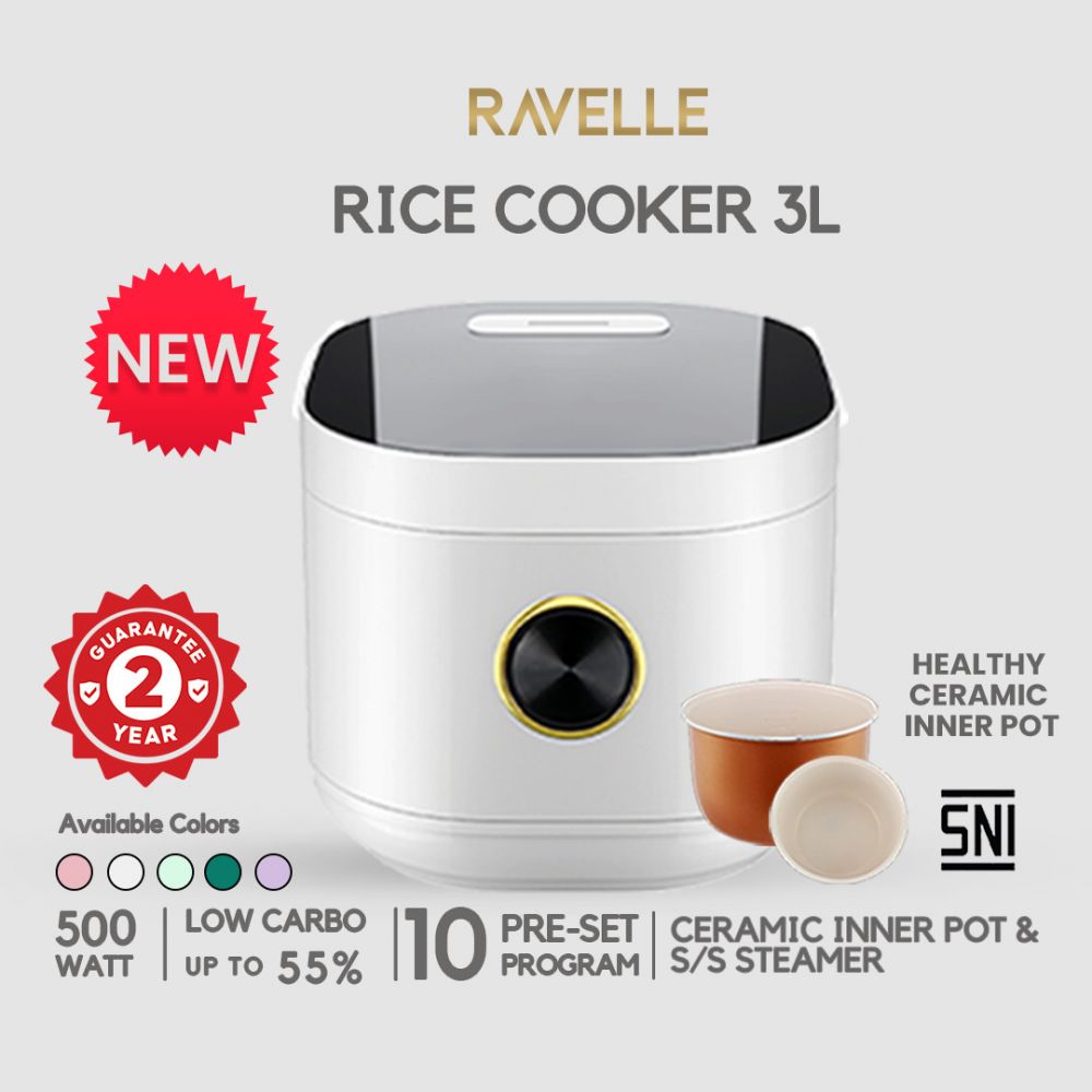 Kapasitasnya 3 liter, dengan batas beras sekitar 1,2 liter dan daya kerja sekitar 500 Watt. Cocok untuk penggunaan rumah tangga moderat yang menginginkan performa baik tanpa konsumsi listrik berlebihan.