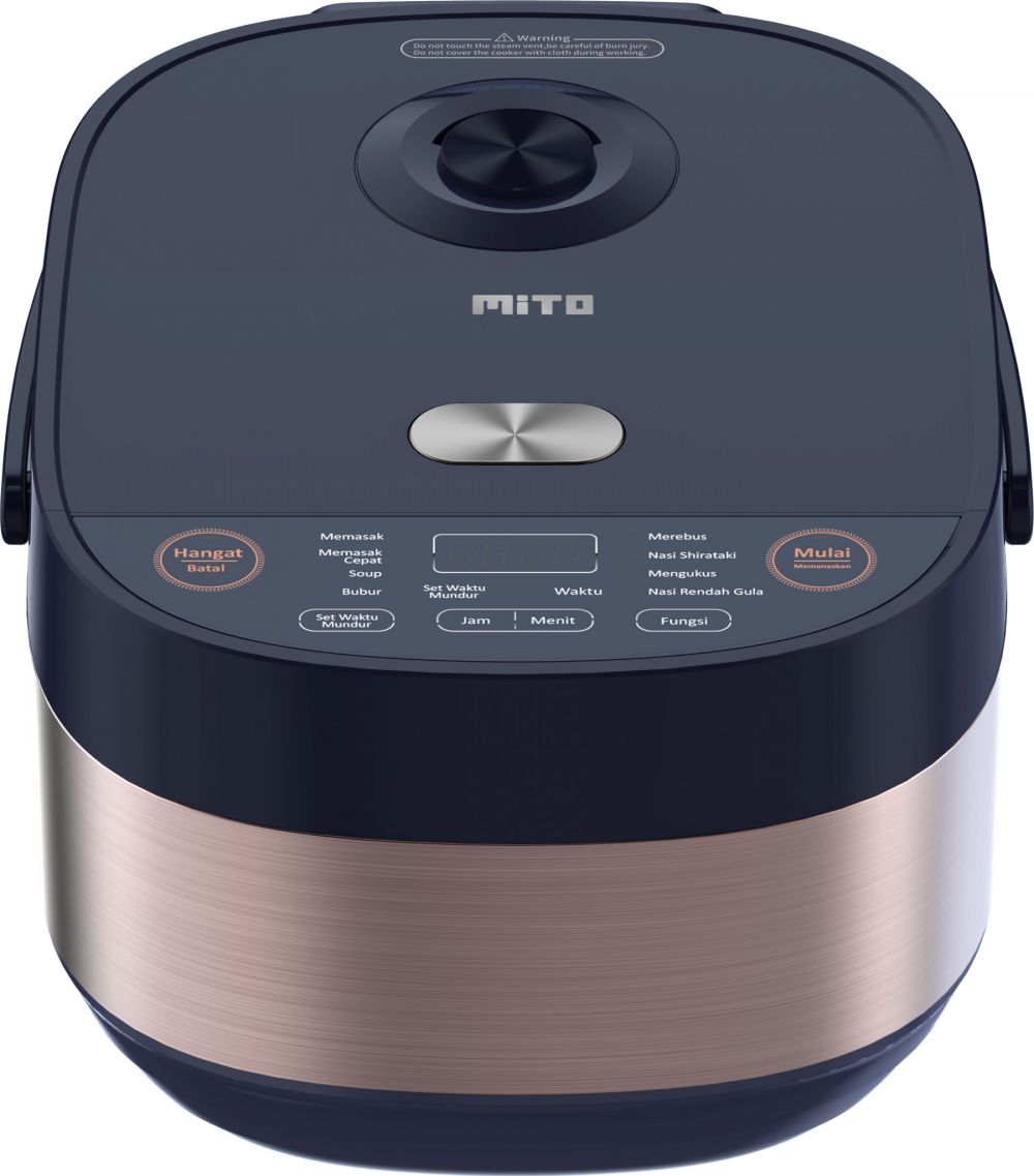 Magic com MITO R7 Low Sugar hadir dengan kapasitas 2 liter dan daya 690 watt, cocok untuk kebutuhan keluarga kecil hingga menengah. Produk ini memiliki desain elegan dengan layar LED dan fitur 3D keepwarm (0–24 jam) untuk menjaga nasi tetap hangat. Desain panci menggunakan 5 lapisan Daikin Japan Coating, serta sistem pembuangan uap yang dapat dilepas untuk memudahkan perawatan.