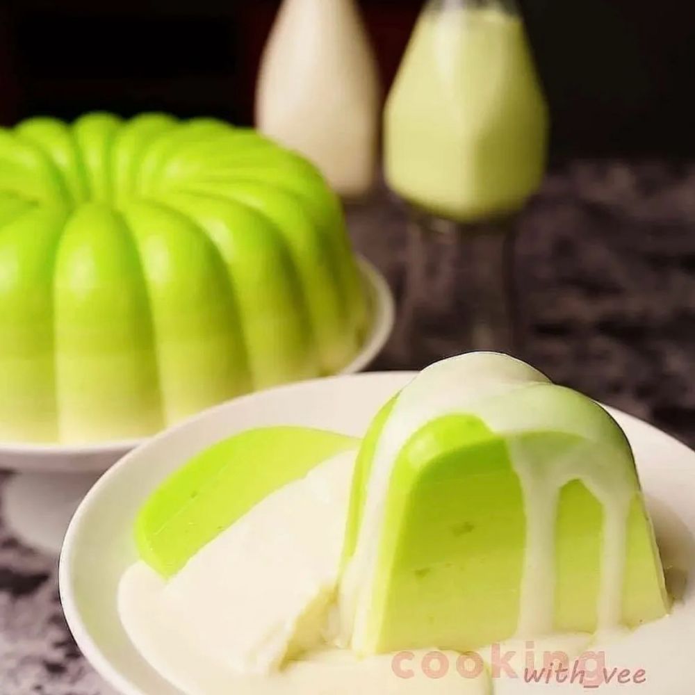 Bosan dengan puding yang sama? Cobalah puding ombre dengan gradasi warna yang indah ini. Puding ini terdiri dari beberapa lapisan dengan gradasi hijau lembut, membuatnya tidak hanya enak tetapi juga merusak mata. Ditambah dengan melon VLA segar, puding ini sangat cocok untuk penutup makanan penutup.