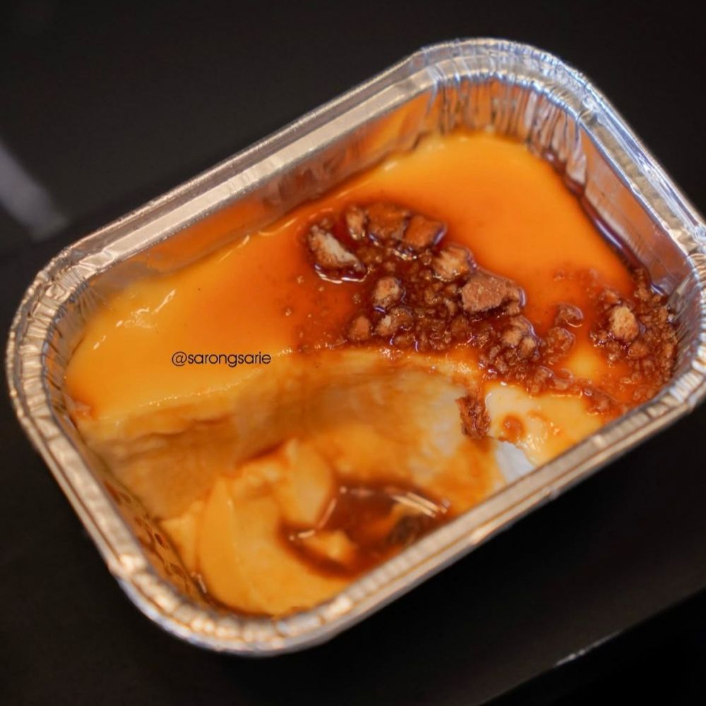 Bagi Anda yang menyukai rasa unik karamel, puding ini adalah pilihan yang tepat. Puding susu lunak dikombinasikan dengan saus gula merah tebal. Biskuit tambahan remah di atasnya memberikan tekstur renyah yang kontras dan menambah kesenangan.