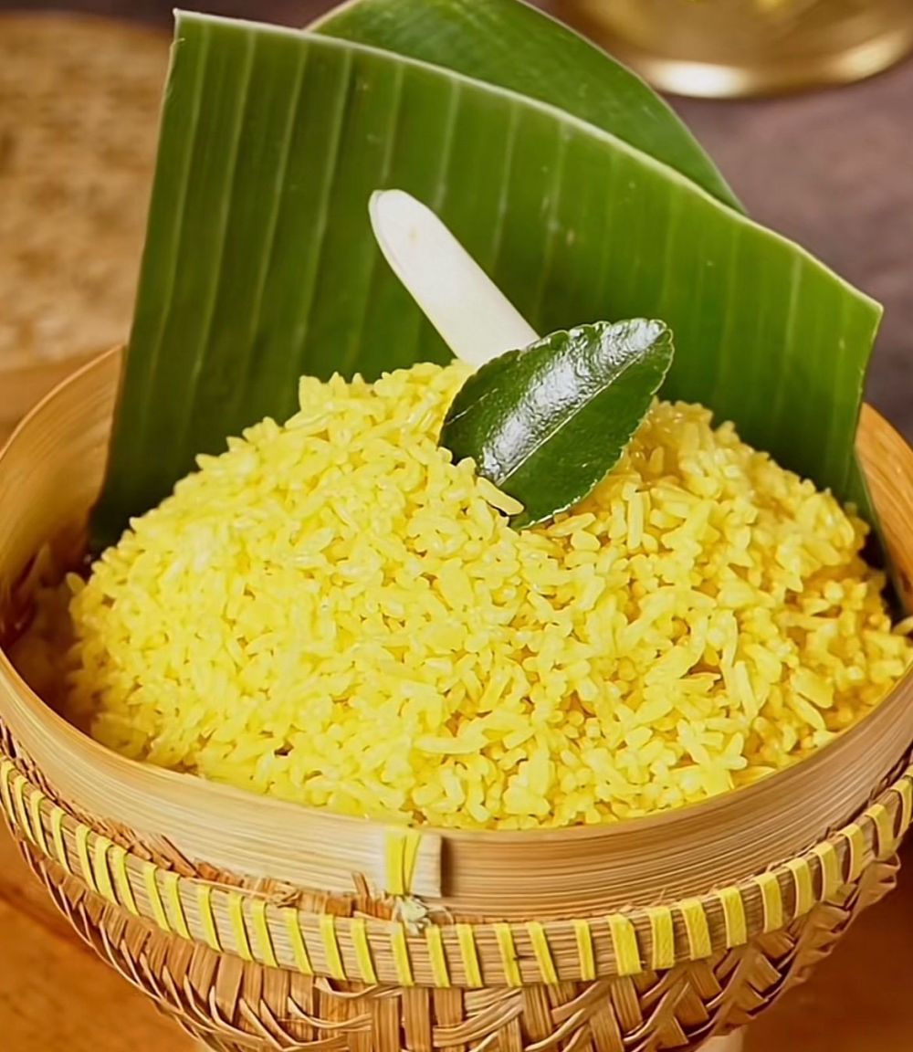 Nasi kuning yang halus dan lezat, dengan aroma bawang putih dan rempah -rempah alami. Cocok untuk sarapan atau makanan keluarga khusus.