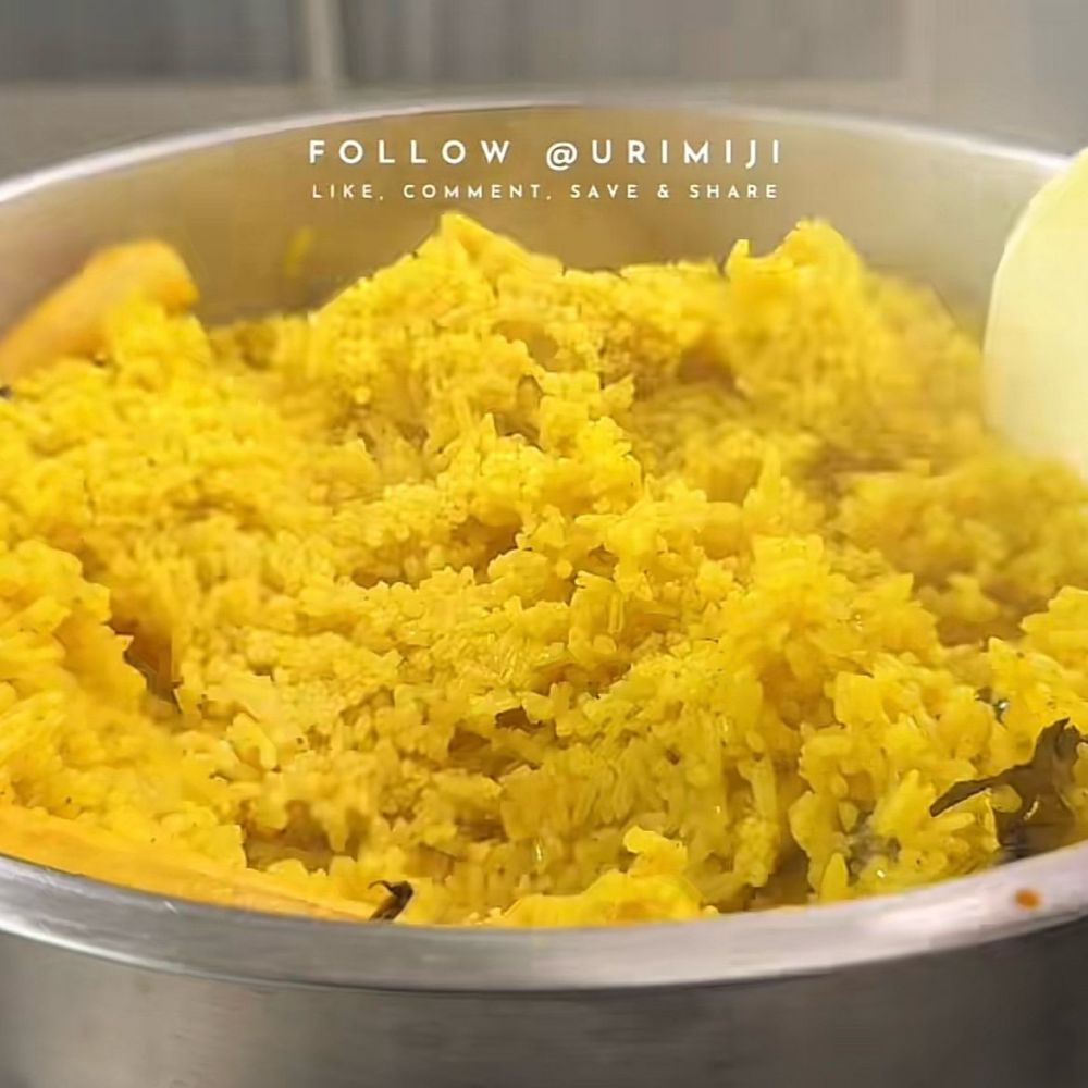 3. Transfer ke kapal panas, uap -+ 25–30 menit sampai nasi dimasak lebih halus, harum, dan minyak kuning keluar.
