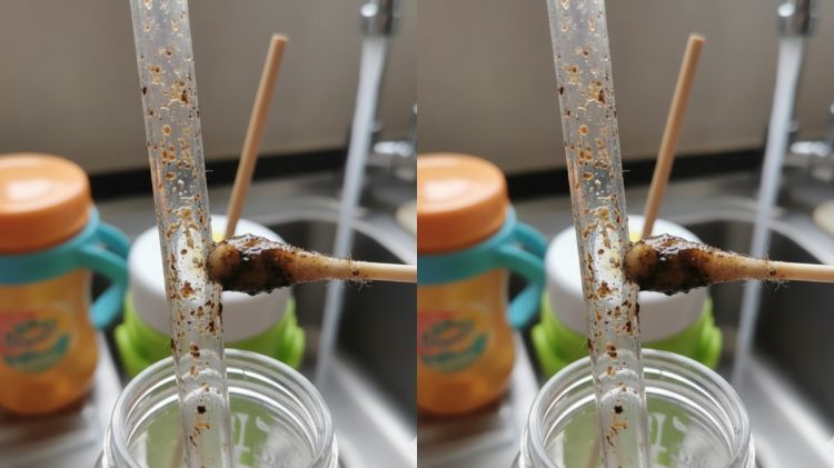 Hasilnya? Anda bisa melihat sendiri bahwa kotoran yang tersembunyi di dalam sedotan akan menempel pada cotton bud. Setelah itu, tinggal bilas dengan air bersih, dan sedotan siap digunakan kembali tanpa khawatir.