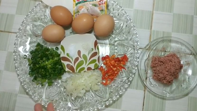 – daun bawang, bawang bombay, dan cabai rawit (semuanya cincang)